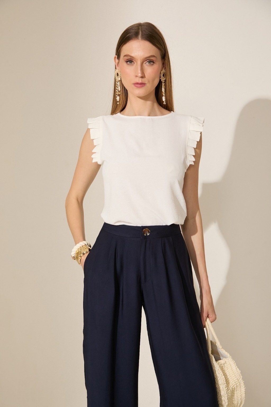 Este elegante bracelete é confeccionado em aço, habilmente revestido com um banho de ouro para um toque de opulência. Seu design inovador simula o movimento fluido de um tecido plissado, adicionando uma sofisticação única à peça.
